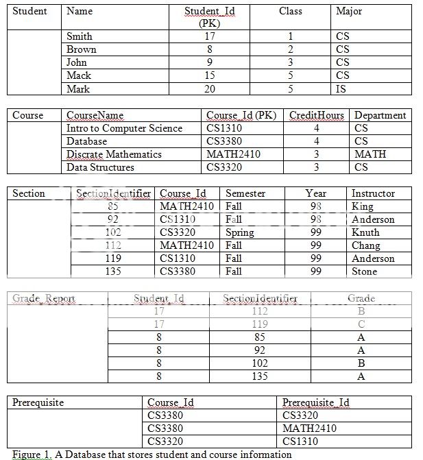 rofl my bad, nevermind, I've finally done the essay myself.now, can anyone help me with the rest:2. Retrieve the names of all courses taught by “King” in 1998 and 19993. For each section taught by “King”, retrieve the course number, semester, year and number of students who took the section4. Retrieve the names and transcript of each senior student (Class = 5) Majoring in CS. A transcript includes course name, course Id, Credit Hours, Semester, Year and Grade for each course completed by the student.5. Retrieve the names and major departments of all straight A students (students who have a grade of A in all their courses).6. Retrieve the names and major departments of all students who do not have a grade of A in any of their courses.LOLsuper melancholy person |