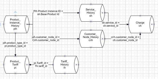 i.e. it thinks that it needs to exclude if any charges exist for that tariff, whereas I need to filter for the tariff + service id and / or tariff + customer id (which are the keys in the charge file) for cancelled product B. Unfortunately there is no direct link between the Product ID and the charge file.