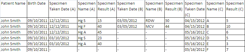 Specimen Taken Date – Repeats with matching specimen name and result