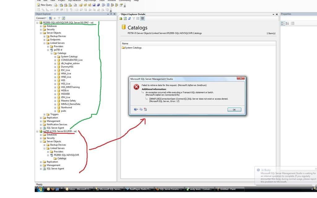 My support team inform me that my servers have been updated and rebooted on monday. Now I need to run some cross db queries today and I dont seem to be able to connect anymore. I am getting the (dreaded apparant but not surprisingly) Msg 17, Level 16, State 1, Line 1